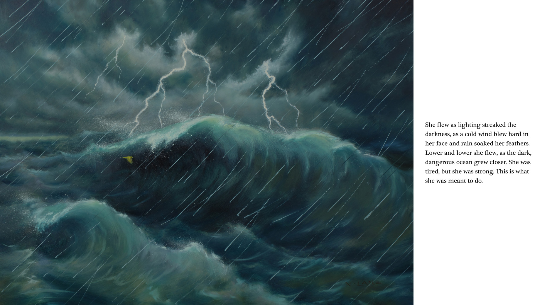 A spectacularly illustrated, factually accurate story of a tiny yellow warbler’s migration journey as she flies thousands of miles to reach her mate. In her dazzling oil paintings, Nancy Lane creates stunning landscapes and people that illuminate Pulitzer-prize finalist Scott Weidensaul’s poetic and detailed description of the warbler’s perilous journey from the tropics of Central America to the Canadian tundra. Together, they engage the reader’s interest in a story that conveys a deep sense of the wonder and the danger of the migration journey.