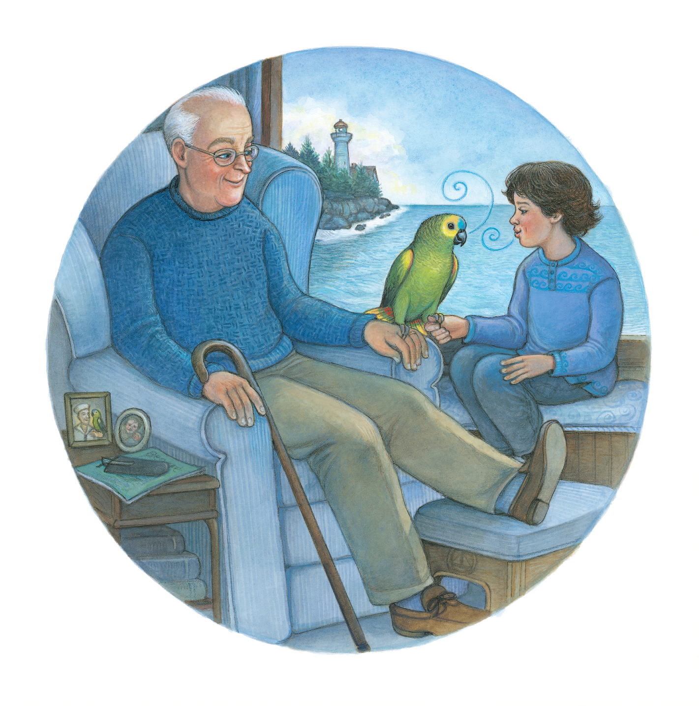 Always Blue for Chicu recounts thirty years of an Amazon parrot’s adventures. Captured as a young bird by smugglers, Chicu frees himself from a market-place cage, is befriended by a kindly sailor, Big Blue, and goes to sea, where he finds a new flock in the sailors on board. When Big Blue goes back to sea, friends agree to care for Chicu. Over many long years, Chicu is handed off from one owner to another until he is brought to a parrot sanctuary where, after a long search, Big Blue finds him again in a heart-warming finale.
