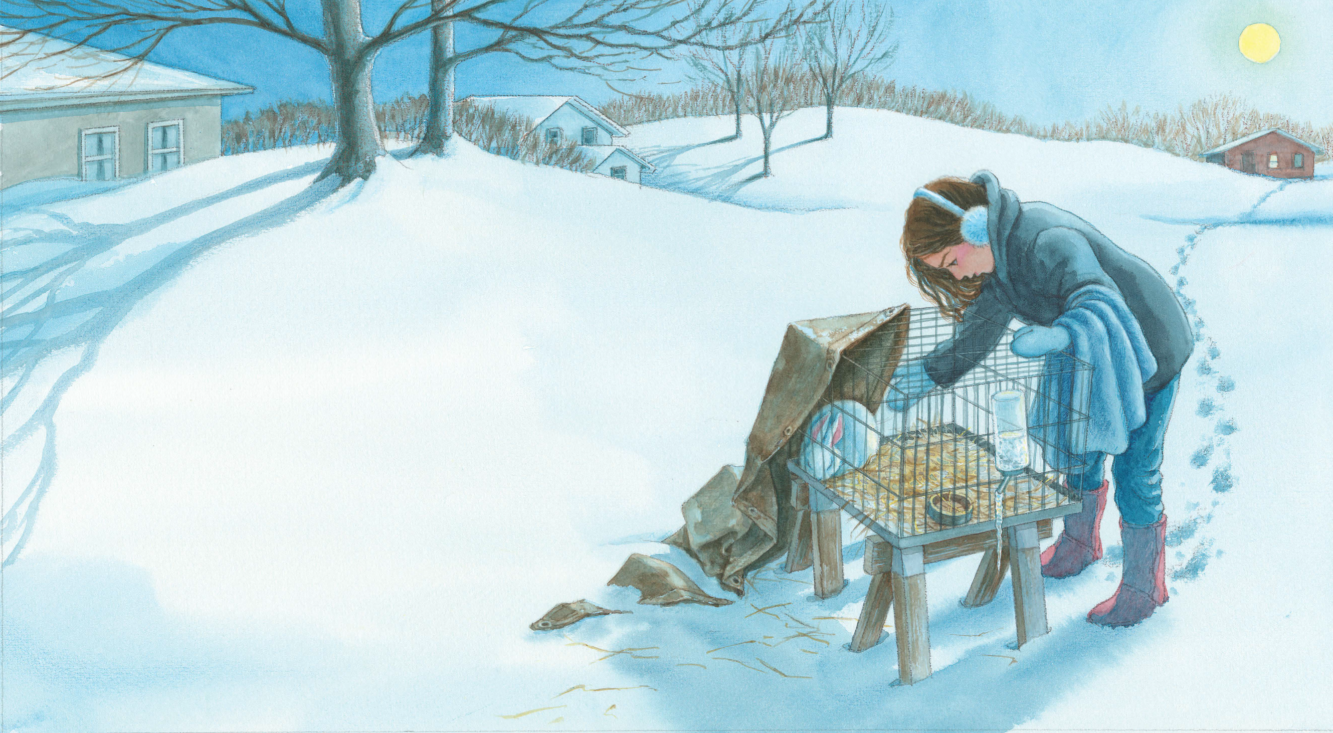 At first Bunny has a good time: But as spring changed into summer,/they left me in my cage longer and longer… When my cage started to smell,/they put it in the backyard. I circled my cage while the children played.