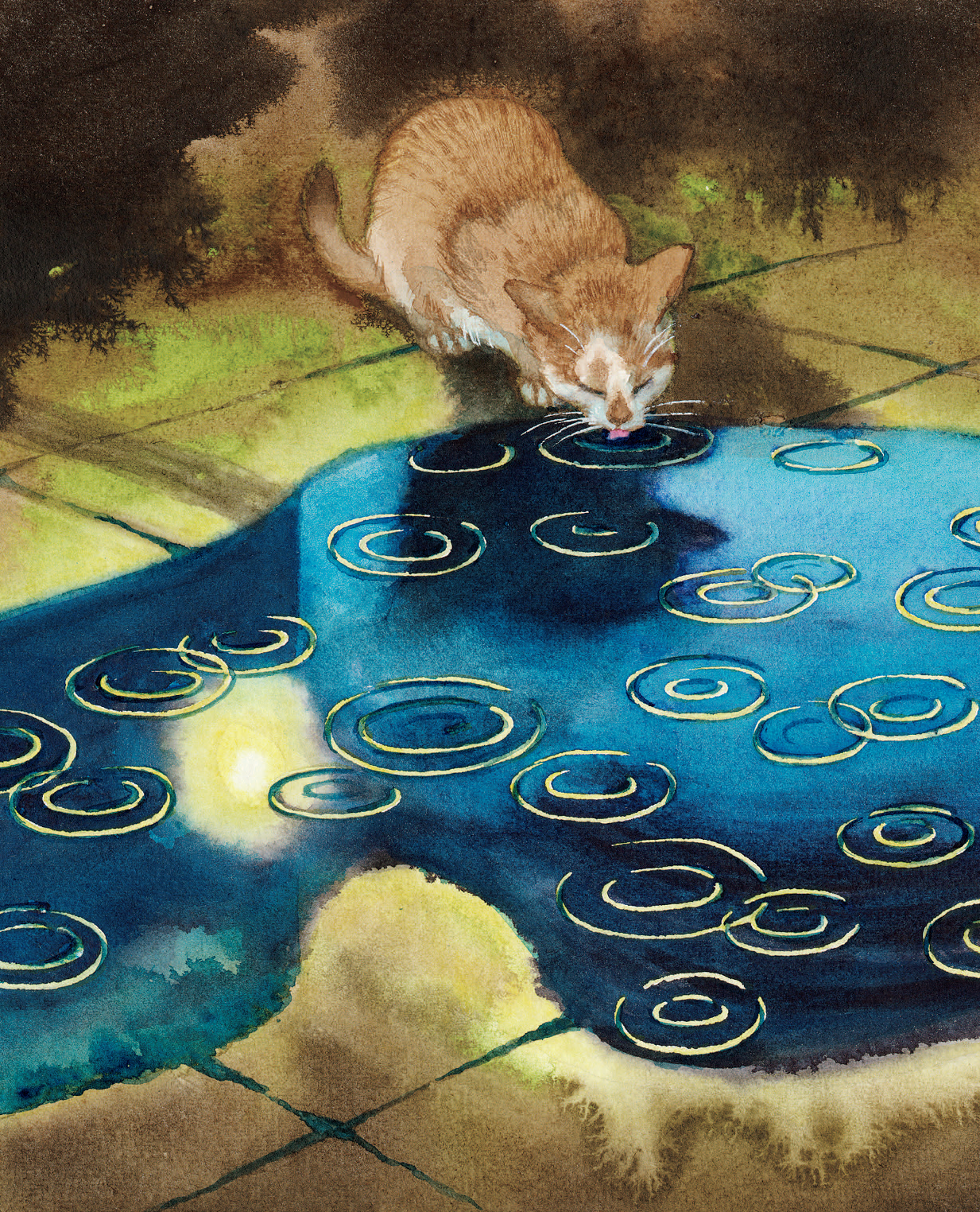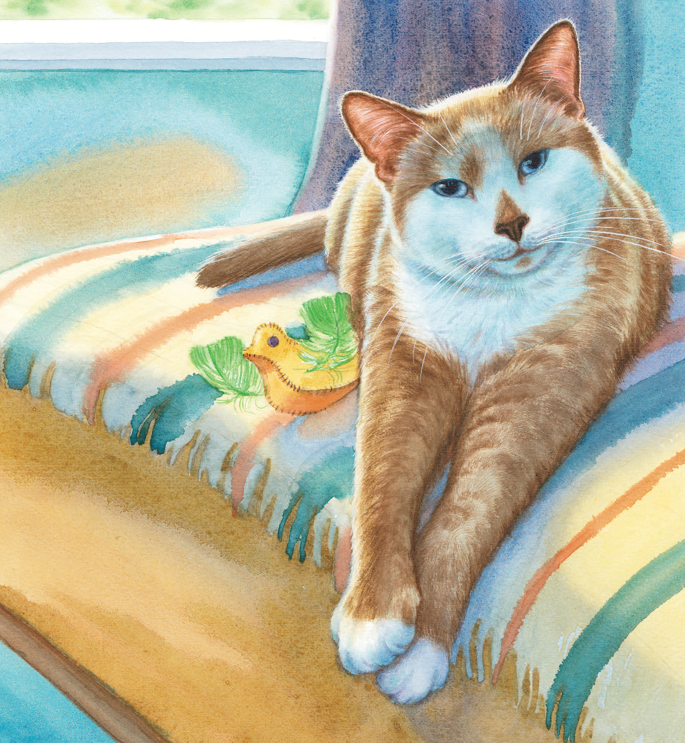 The debate over whether domestic cats should be allowed to roam outside has made it into picture books—or at least half of it has. This story introduces KokoCat stretched out on her back, a contented indoor animal: “She stalks the sun around the room.” A few pages later, she rests on her pillow, licking her paws: “KokoCat is warm, well fed, and loved.” When the opportunity arrives, however, KokoCat escapes into the mysteries of the outdoors. She encounters a fierce tomcat, water from a “sour puddle,” a chasing dog, and little food; she sneaks under a trash bin during the stormy night. Graham-Barber and Lane succeed in making this adventure a scary one, and when the cat hears familiar voices calling the next morning, she seems visibly relieved. The last line reads: “KokoCat is an indoor cat. For good.” An afterword spells out what the book has suggested through terse text and realistic paintings, offering convincing arguments for keeping cats indoors for the safety of both songbirds and the cats themselves. Grades K-2.